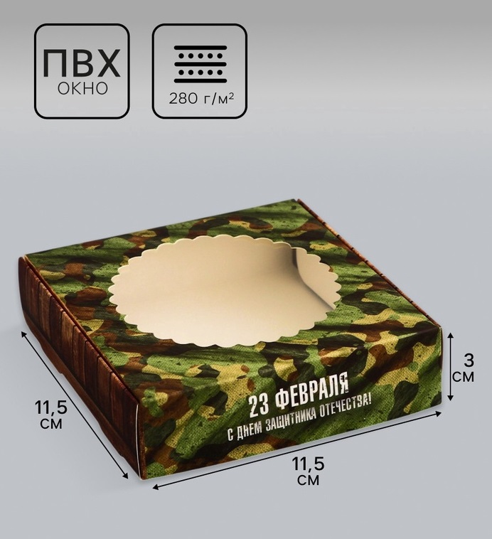 Купить Коробка для печенья «23 февраля», 11.5×11.5×3 см S8546 по лучшей цене с доставкой - интернет магазин №1 в России