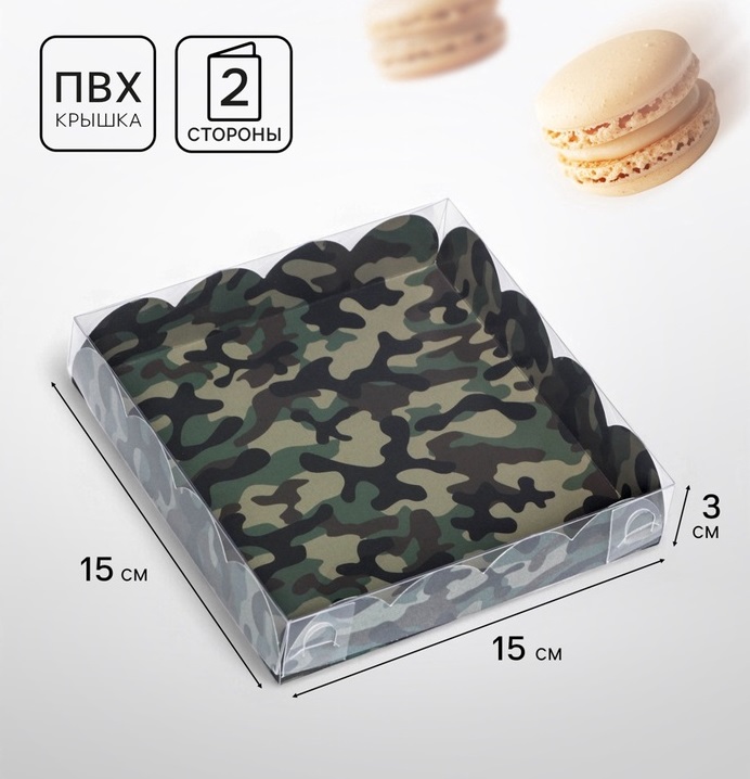 Купить Коробка для печенья, Зеленый камуфляж 15×15×3см S8571 по лучшей цене с доставкой - интернет магазин №1 в России