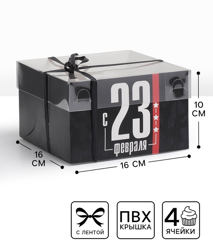 Купить Коробка для 4 капкейков «23 февраля», 16×16×10 см S8601 по лучшей цене с доставкой - интернет магазин №1 в России