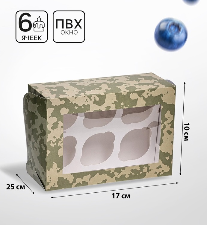 Купить Коробка для 6 капкейков с окном, «Камуфляж», 25×17×10 см S8579 по лучшей цене с доставкой - интернет магазин №1 в России