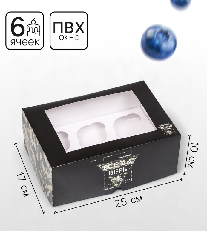 Купить Коробка для 6 капкейков Всегда верь в себя, 25×17×10 см S8222 по лучшей цене с доставкой - интернет магазин №1 в России