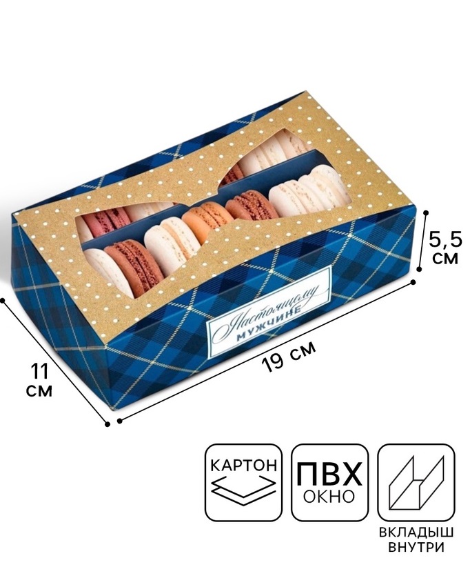 Купить Коробка для макарун с окном, Настоящему мужчине, 11×19×5.5 см S8240 по лучшей цене с доставкой - интернет магазин №1 в России