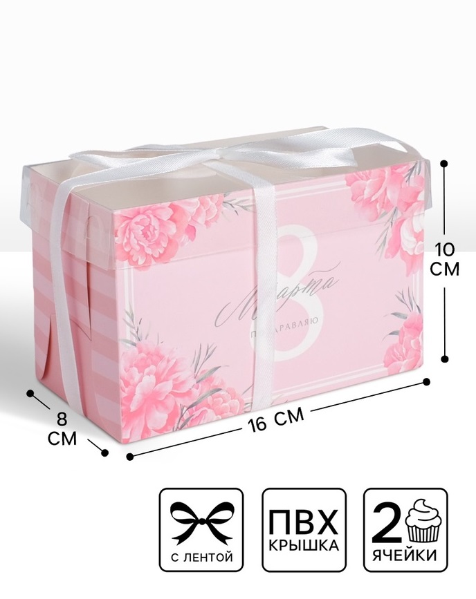 Купить Коробка для 2 капкейков Поздравляю с 8 марта, 16×8×10 см S8602 по лучшей цене с доставкой - интернет магазин №1 в России
