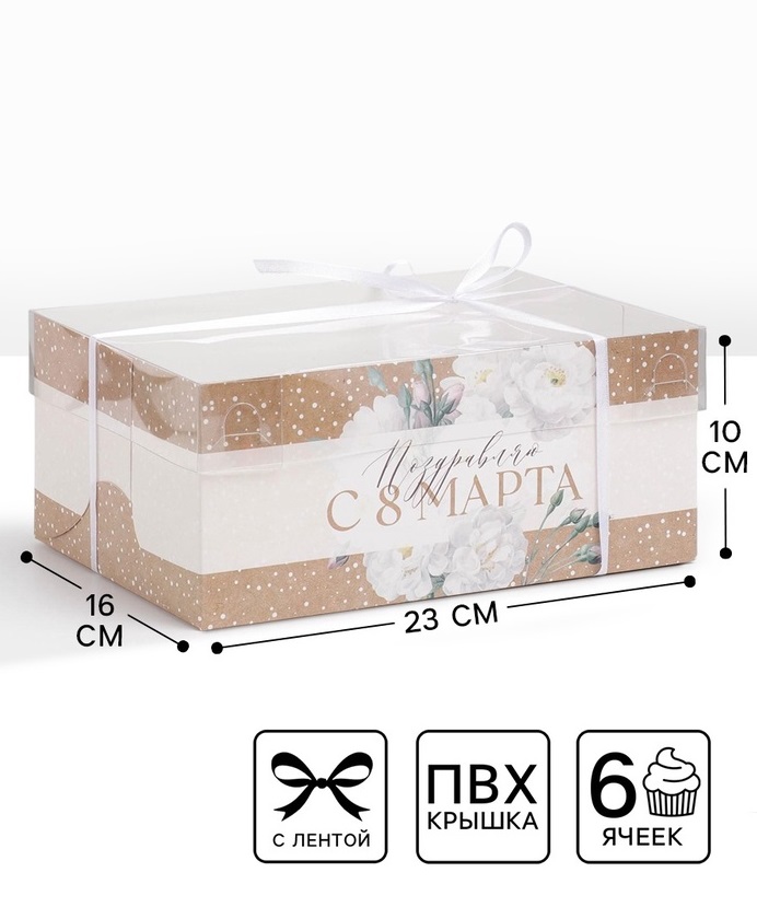Купить Коробка для 6 капкейков «8 марта», 23×16×10 см S8597 по лучшей цене с доставкой - интернет магазин №1 в России