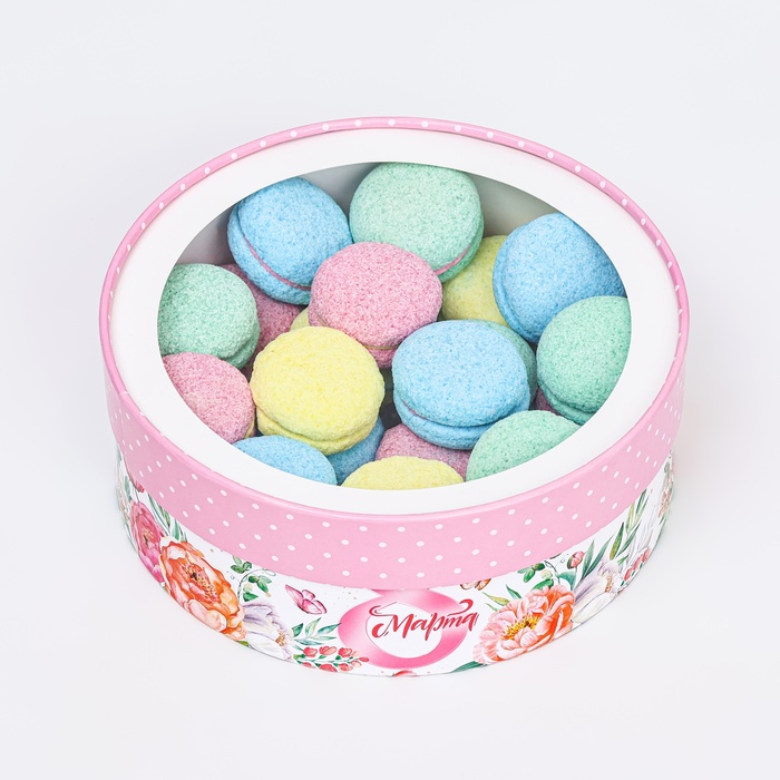 Купить Коробка для макарун тубус с окном 8 Марта с розами, 21×21×7 см S8488 по лучшей цене с доставкой - интернет магазин №1 в России