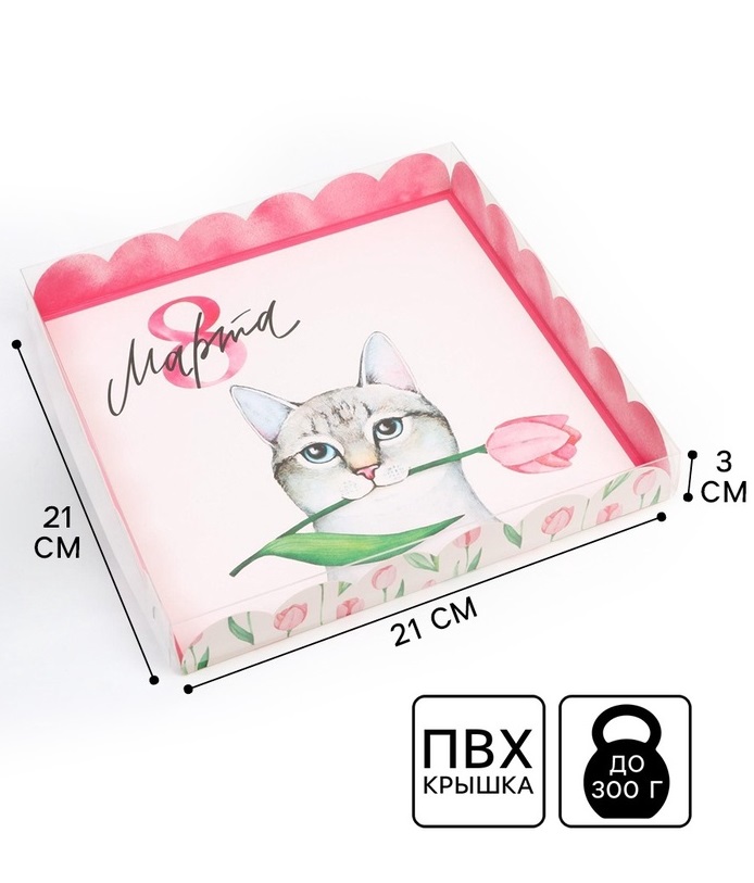 Купить Коробка для печенья «8 марта», 21×21×3 см S8540 по лучшей цене с доставкой - интернет магазин №1 в России