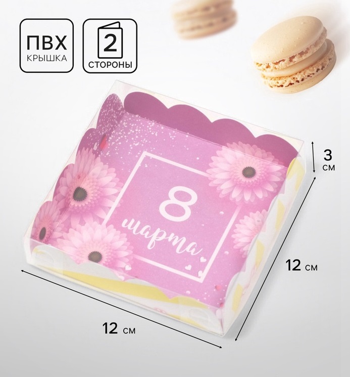 Купить Коробка для печенья «С 8 Марта», 12×12×3 см S8541 по лучшей цене с доставкой - интернет магазин №1 в России
