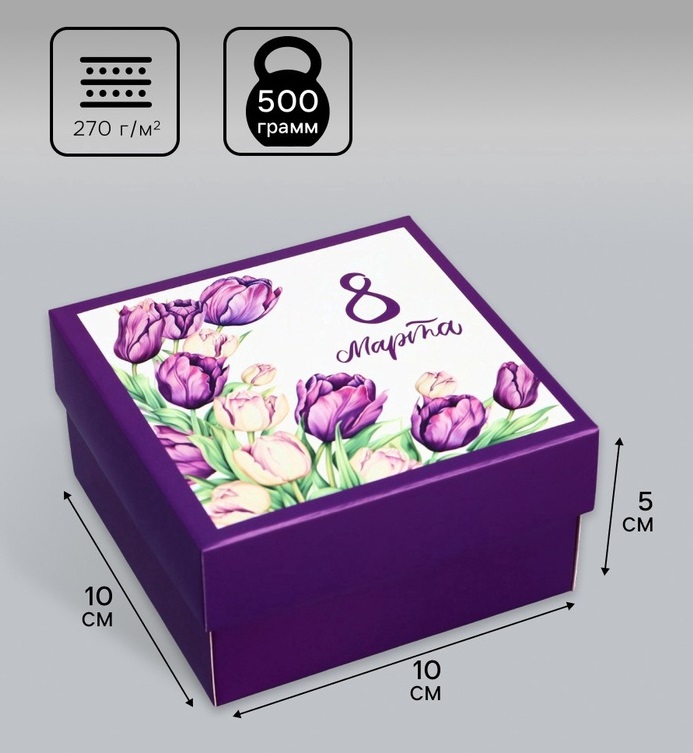 Купить Коробка для подарков «8 марта», 10×10×5 см S8525 по лучшей цене с доставкой - интернет магазин №1 в России
