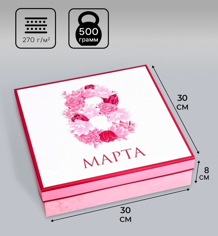 Купить Коробка для подарков «8 марта», 30×30×8 см S8524 по лучшей цене с доставкой - интернет магазин №1 в России
