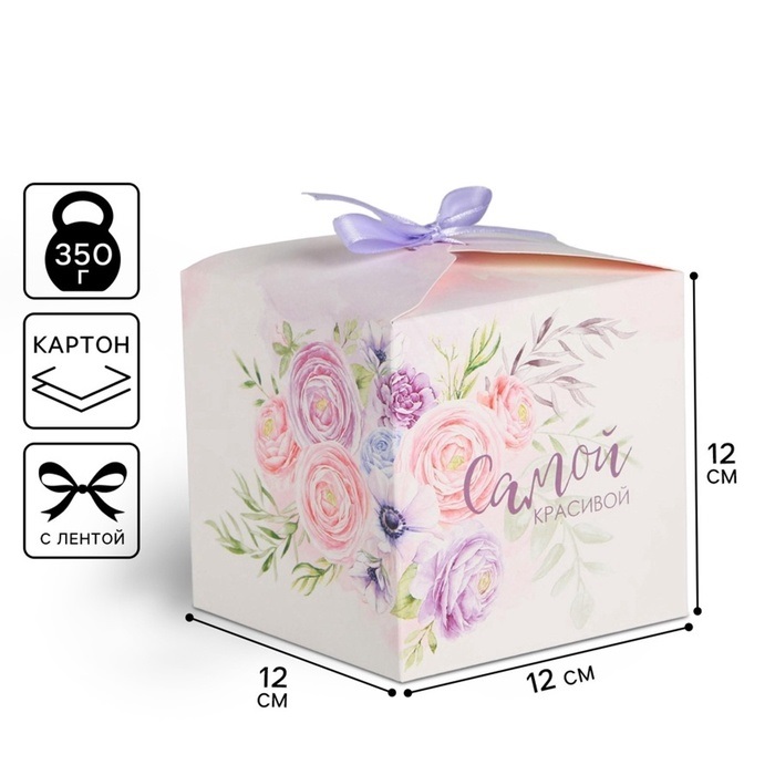 Купить Коробка для подарков Самой красивой, 12×12×12 см S8196 по лучшей цене с доставкой - интернет магазин №1 в России