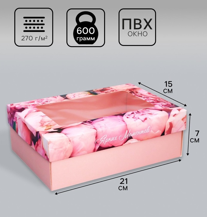 Коробка для подарков, «Ярких моментов», 21*15*7см, с окном