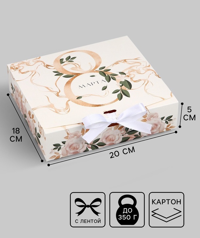 Купить Коробка подарочная «8 марта, золото», 20×18×5 см S8599 по лучшей цене с доставкой - интернет магазин №1 в России