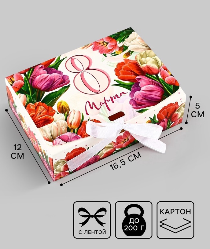 Купить Коробка подарочная «С 8 марта», 16.5×12×5 см S8498 по лучшей цене с доставкой - интернет магазин №1 в России