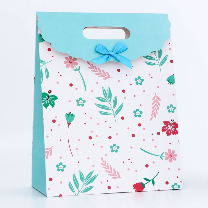 Купить Пакет-коробка подарочная Голубые цветочки, 24×12×31 см S8544 по лучшей цене с доставкой - интернет магазин №1 в России