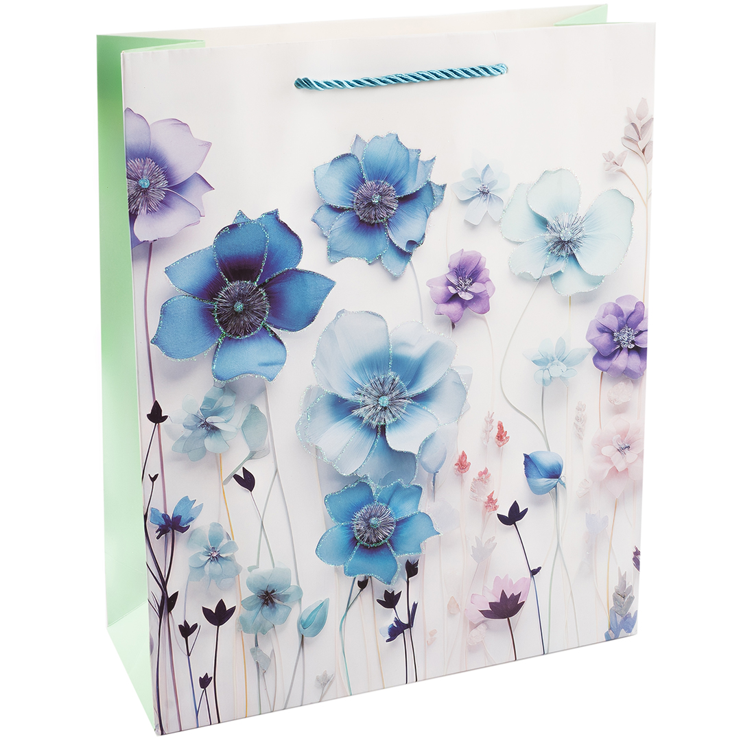 Пакет подарочный, Цветочная мелодия, Дизайн №4, с блестками, 41,5*30*12 см