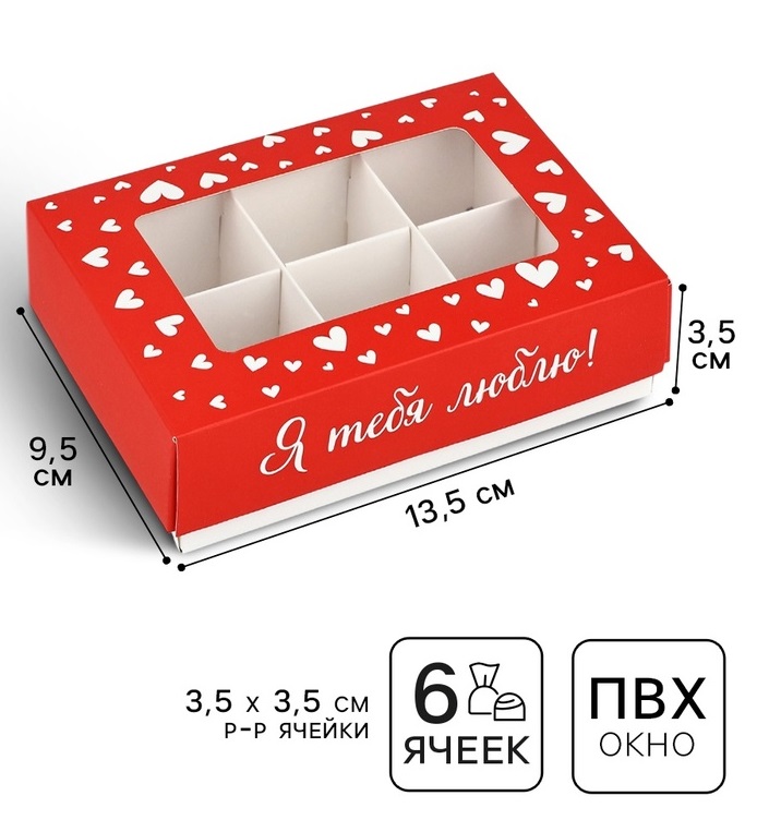 Купить Коробка для 6 конфет Я тебя люблю!, 13,5*9,8*3,8см S8489 по лучшей цене с доставкой - интернет магазин №1 в России