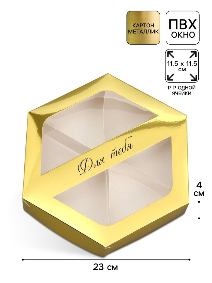 Купить Коробка для сладостей, Для тебя, золото металлик, 23×20×4 см S8233 по лучшей цене с доставкой - интернет магазин №1 в России