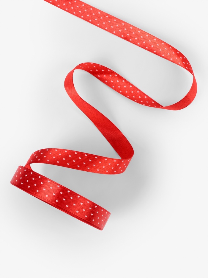 Лента атласная Сердечки, 15 мм, 23±1 м, красная