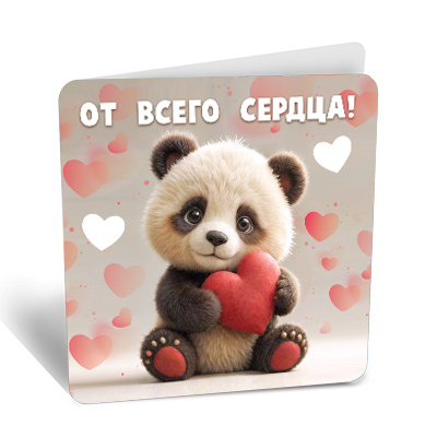 Купить Мини - открытка, От всего сердца (панда с сердечком), 7*7 см S8472 по лучшей цене с доставкой - интернет магазин №1 в России