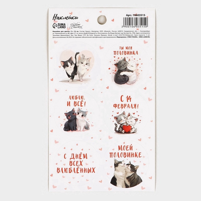 Купить Наклейки бумажные 14 февраля Валентинки, на подарки, 9×16 см, 6шт S8239 по лучшей цене с доставкой - интернет магазин №1 в России