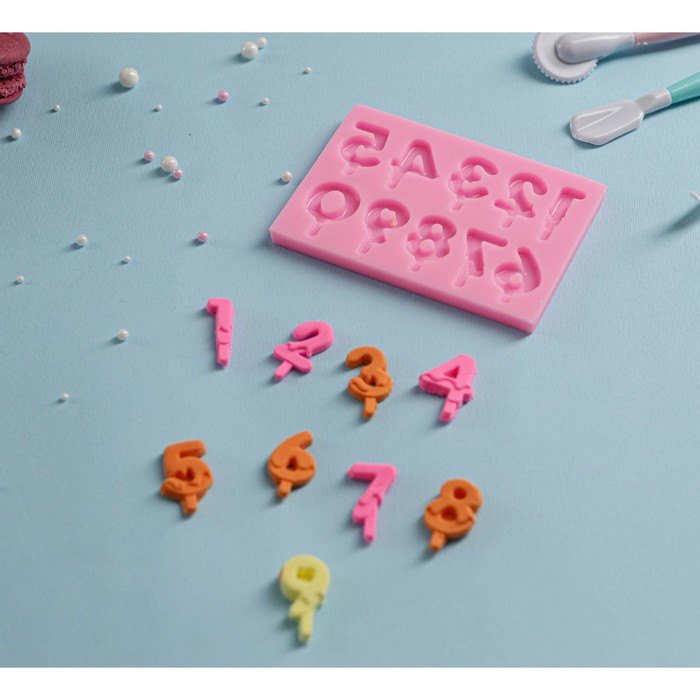 Молд силиконовый Цифры для торта, силикон, 9.5×6.5×0.4 см