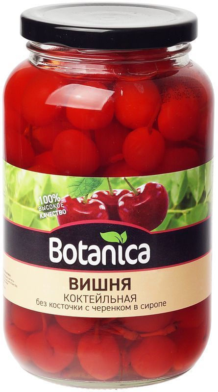 Вишня коктейльная без косточки с черенком в сиропе Botanica, 720мл за 545 ₽ - купить в Москве оптом и в розницу.