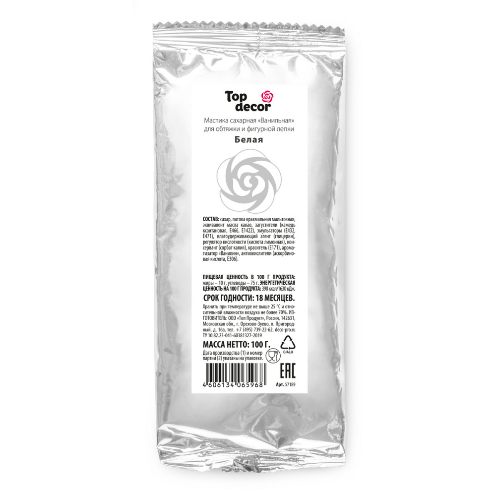 Мастика сахарная Топ Декор белая 100гр за 109 ₽ - купить в Москве оптом и в розницу.