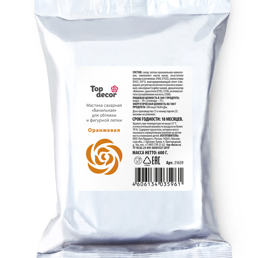 Мастика сахарная Топ Декор оранжевая 600гр за 325 ₽ - купить в Москве оптом и в розницу.