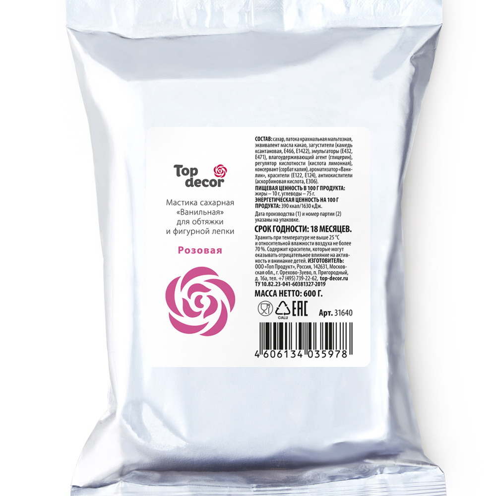 Мастика сахарная Топ Декор розовая 600гр за 325 ₽ - купить в Москве оптом и в розницу.