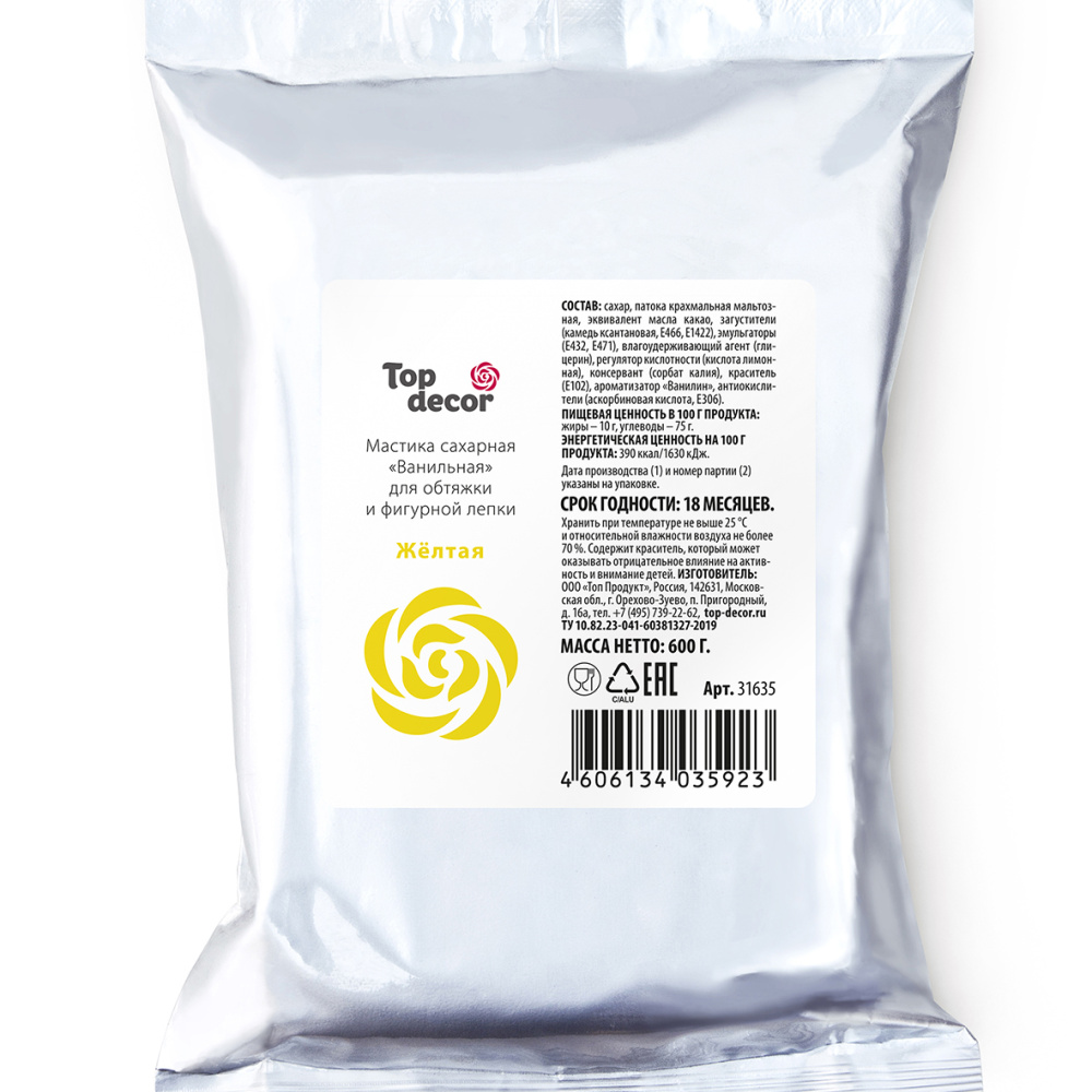 Мастика сахарная Топ Декор желтая 600гр за 325 ₽ - купить в Москве оптом и в розницу.
