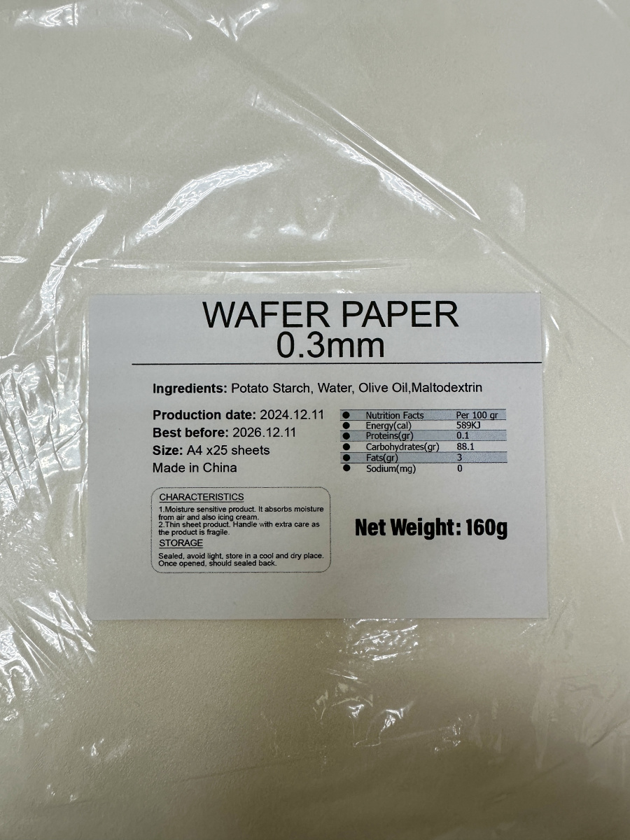 Вафельная пищевая бумага тонкая 0,3мм, 25 листов
