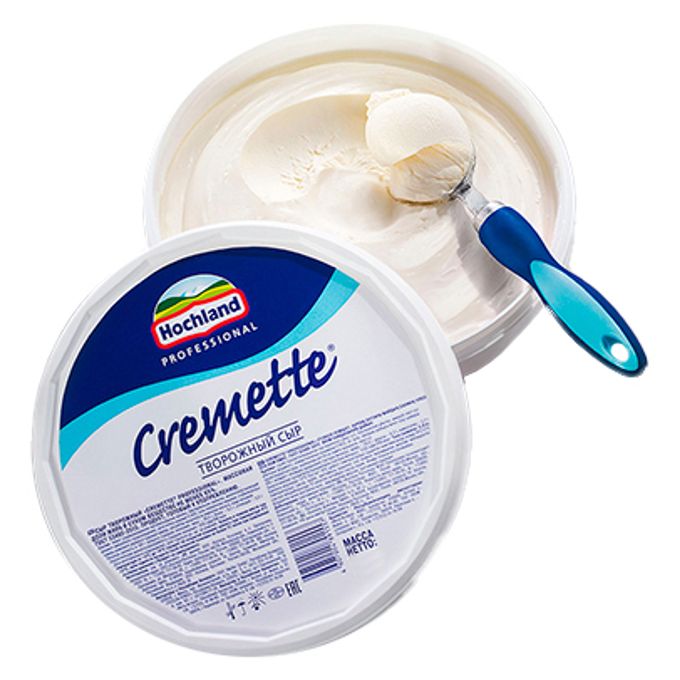 Премиальный творожный сыр Cremette Hochland Professional с жирностью 65% – профессиональное решение для кондитеров и шеф-поваров. Обладает идеально гладкой, пластичной текстурой, легко взбивается и сохраняет стабильность в десертах.