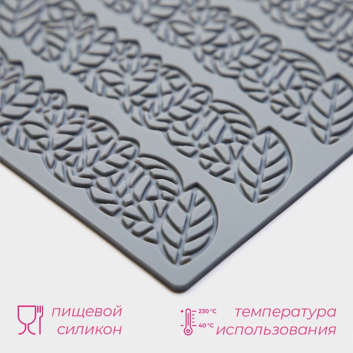 Коврик для айсинга Доляна «Листья», силикон, 16×13×0,3 см, цвет серый за 225 ₽ - купить в Москве оптом и в розницу.