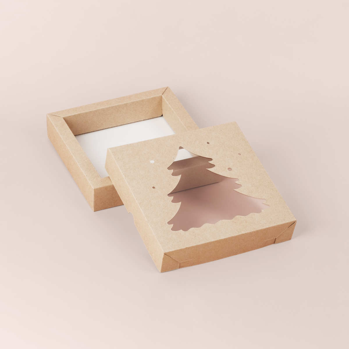 Купить Коробка для печенья Ёлка, 16*16*3,5см, крафт S8277 по лучшей цене с доставкой - интернет магазин №1 в России