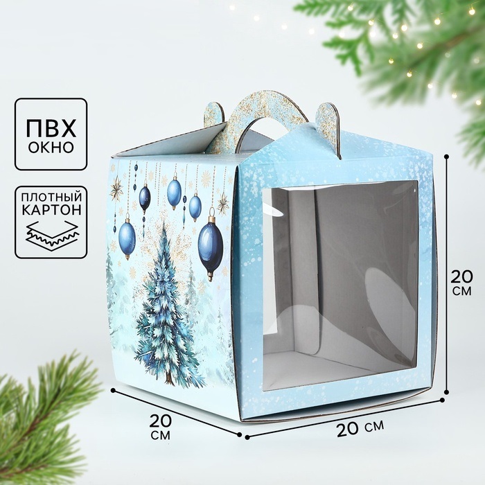 Купить Коробка для торта с окном, сундук, Ёлочка, 20×20×20 см S8168 по лучшей цене с доставкой - интернет магазин №1 в России