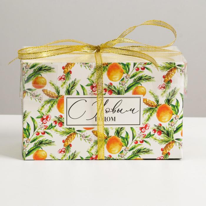 Коробка для 2 капкейков Новогодняя Мандаринка, 16х8х10см