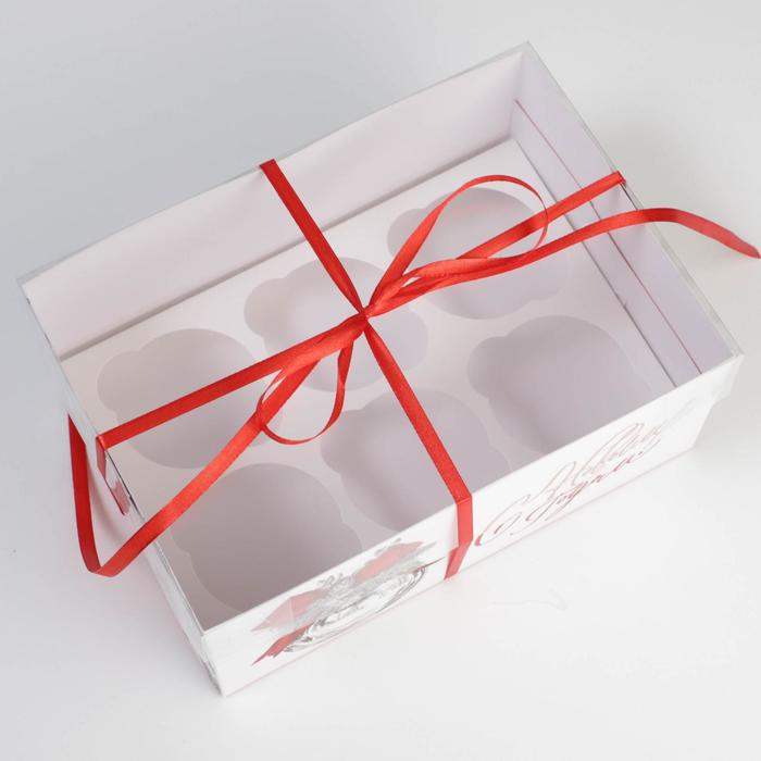 Купить Коробка для 6 капкейков Новый год: серебро, 23х16х10см S7359 по лучшей цене с доставкой - интернет магазин №1 в России