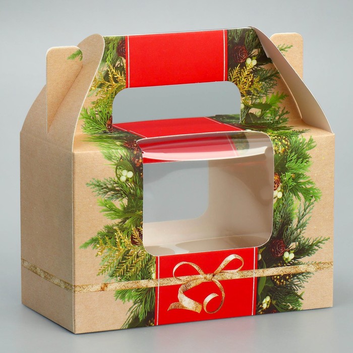 Купить Коробка для 2 капкейков новогодняя Хвоя и шишки, 16×10×8 см S7666 по лучшей цене с доставкой - интернет магазин №1 в России