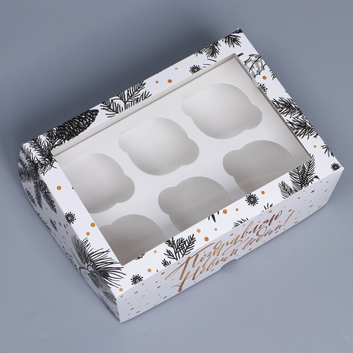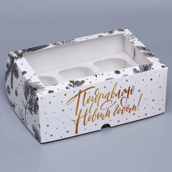 Купить Коробка для 6 капкейков с окном Поздравляю С Новым годом!, 25х17х10см S7366 по лучшей цене с доставкой - интернет магазин №1 в России
