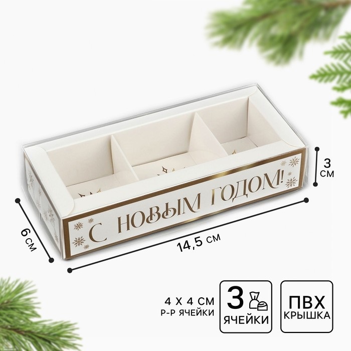 Купить Коробка для 3 конфет Золотые снежинки, 14,5*6*3см S7443 по лучшей цене с доставкой - интернет магазин №1 в России