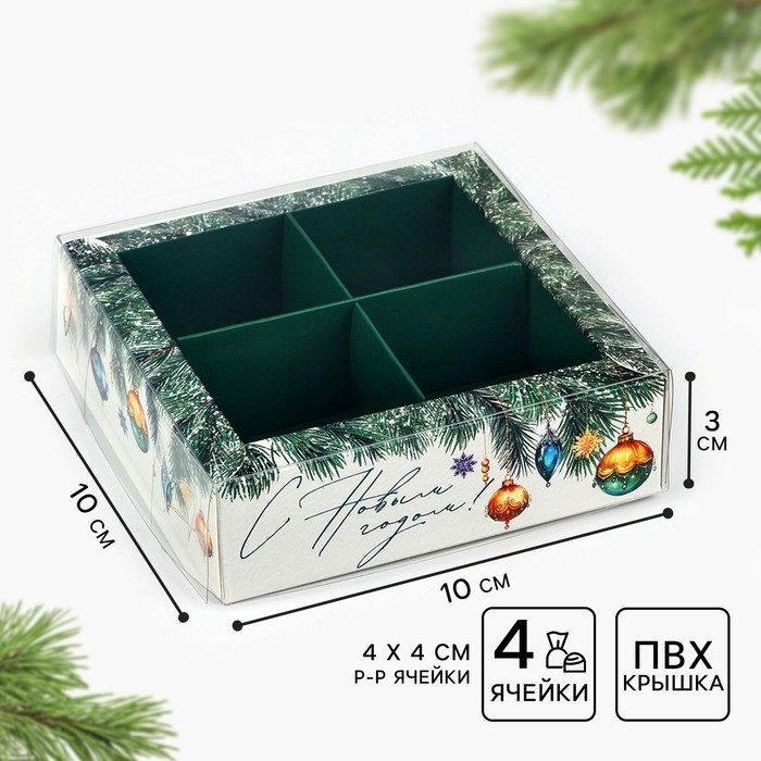 Купить Коробка для 4 конфет С Новым Годом, 10*10*3см S7444 по лучшей цене с доставкой - интернет магазин №1 в России