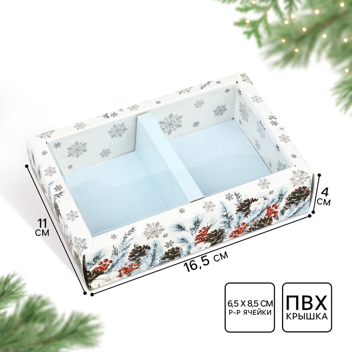 Купить Коробка для пирожных Снежная ботаника, 16,5*11*4см S7448 по лучшей цене с доставкой - интернет магазин №1 в России