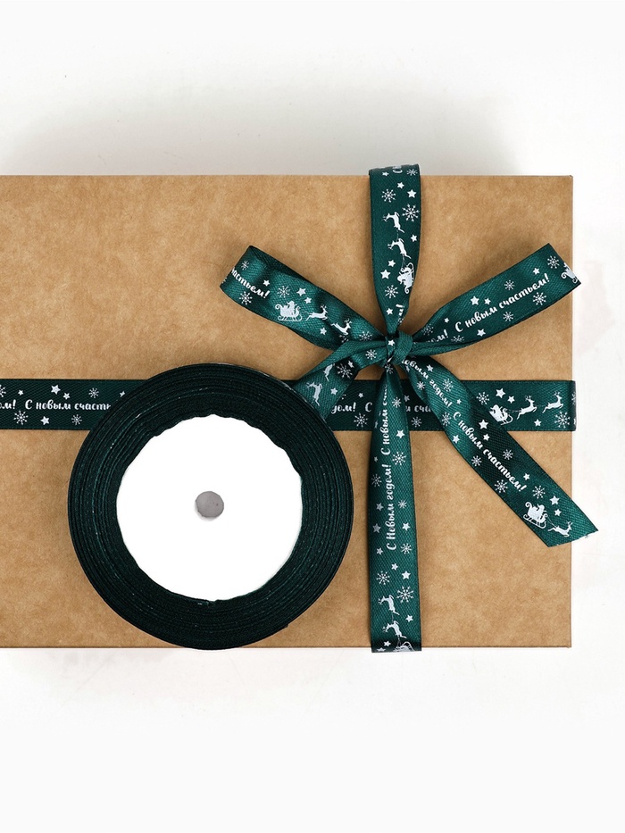 Купить Лента атласная 15мм*23м, зеленый, С Новым Годом! S7890 по лучшей цене с доставкой - интернет магазин №1 в России
