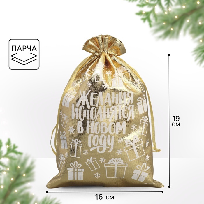 Купить Мешочек подарочный Желания исполняются, парча, 16*24см S7884 по лучшей цене с доставкой - интернет магазин №1 в России