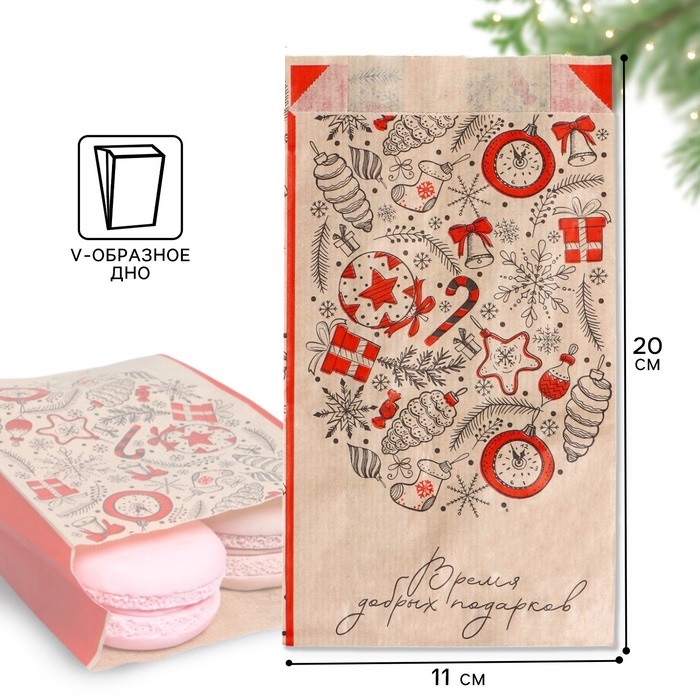 Купить Пакет бумажный фасовочный новогодний, крафт, Время добрых подарков, 20×11×4 см S7505 по лучшей цене с доставкой - интернет магазин №1 в России