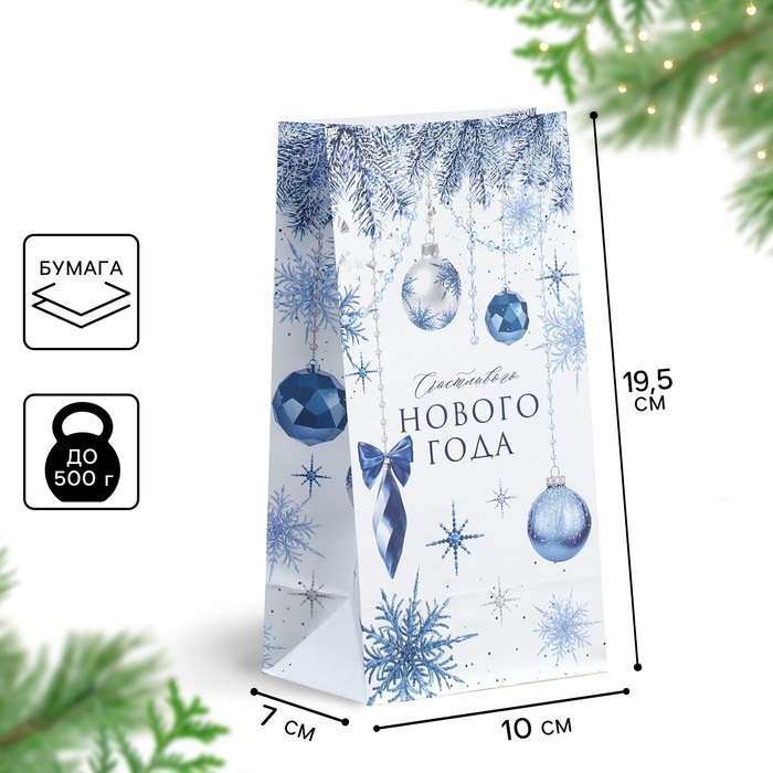 Купить Пакет подарочный без ручек Счастливого Нового года, 10×19.5×7см S7677 по лучшей цене с доставкой - интернет магазин №1 в России