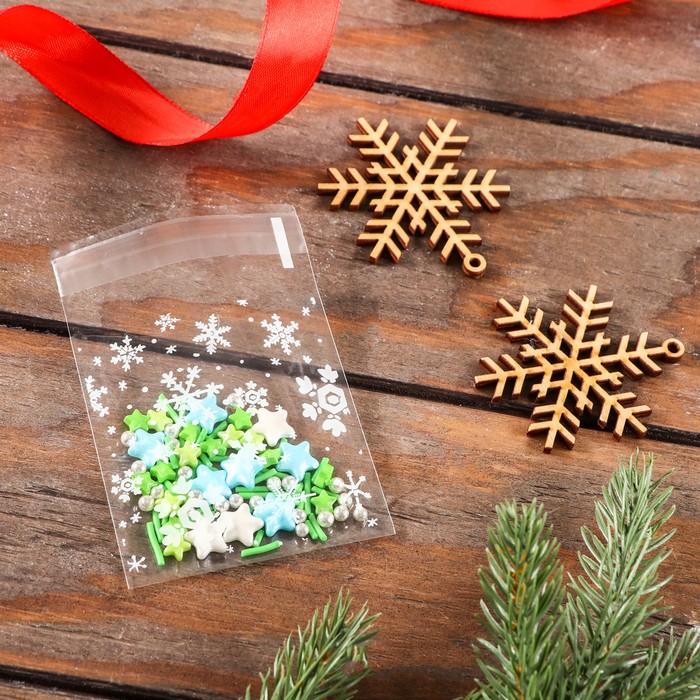 Купить Пакет подарочный новогодний БОПП с липкой лентой, Снежинки, 7×7+3 см S7667 по лучшей цене с доставкой - интернет магазин №1 в России