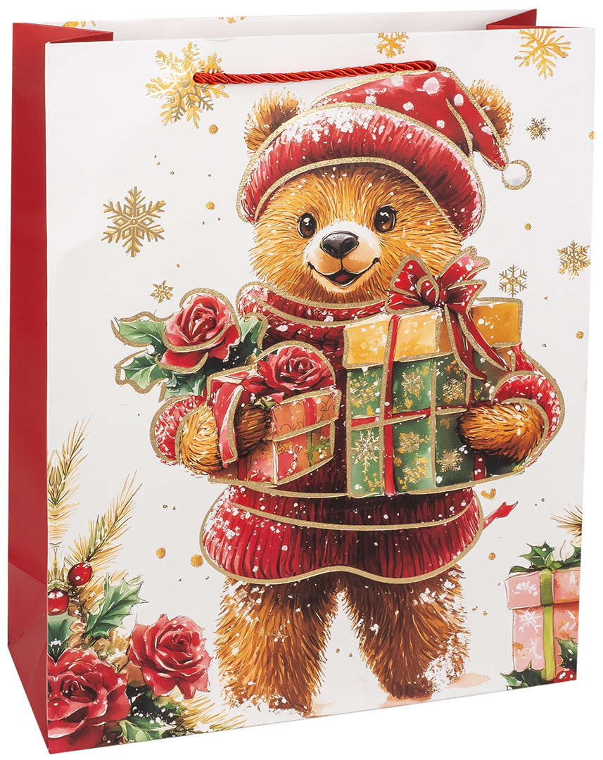 Купить Пакет подарочный, Новогодний мишка, Металлик, 40*31*12см S7785 по лучшей цене с доставкой - интернет магазин №1 в России