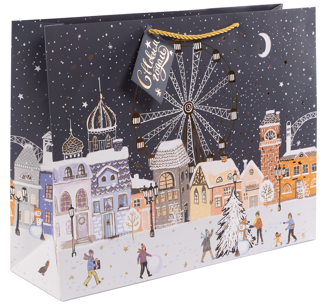 Купить Пакет подарочный С Новым Годом! (зимняя площадь), металлик, 26*32*12см S7779 по лучшей цене с доставкой - интернет магазин №1 в России