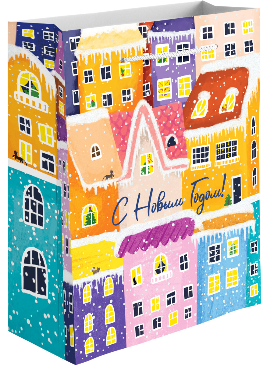 Купить Пакет подарочный Счастливого Нового Года! (зимний городок), металлик, 41*31*12см S7776 по лучшей цене с доставкой - интернет магазин №1 в России